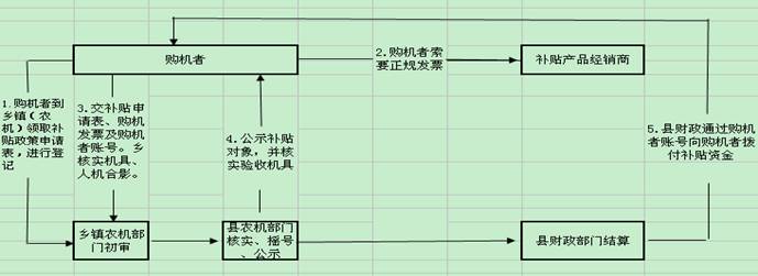 1.通过摇号确定补贴对象。 2.确定的补贴对象要公示不少于7天,同时在本县农机购置补贴网络专栏中公示。 3.要组织获得补贴的农民填报农业机械购置补贴机具登记信息表(代验收单)。 4.县级财政部门通过购机者账号将补贴资金发放给购机者。 |